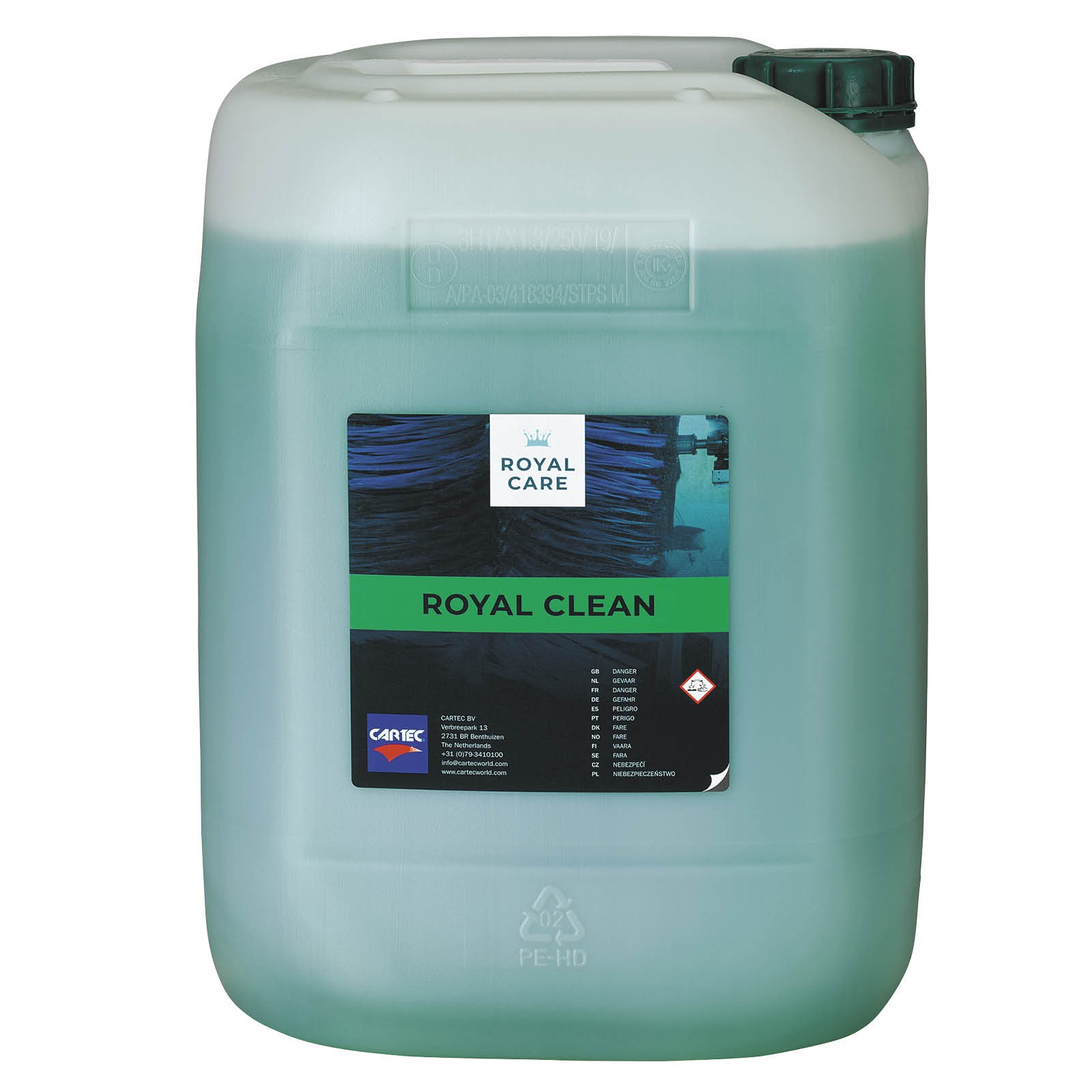 Royal Clean is een geconcentreerde, schuimende borstelshampoo voor gebruik in de wasstraat. Het product heeft een sterk zure PH en is biologisch afbreekbaar. Royal Clean biedt een aangename geur en is NTA-vrij.